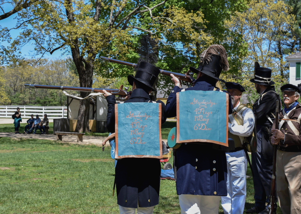 - See a “Sham Fight” as rival militia companies square off against each other in the field.